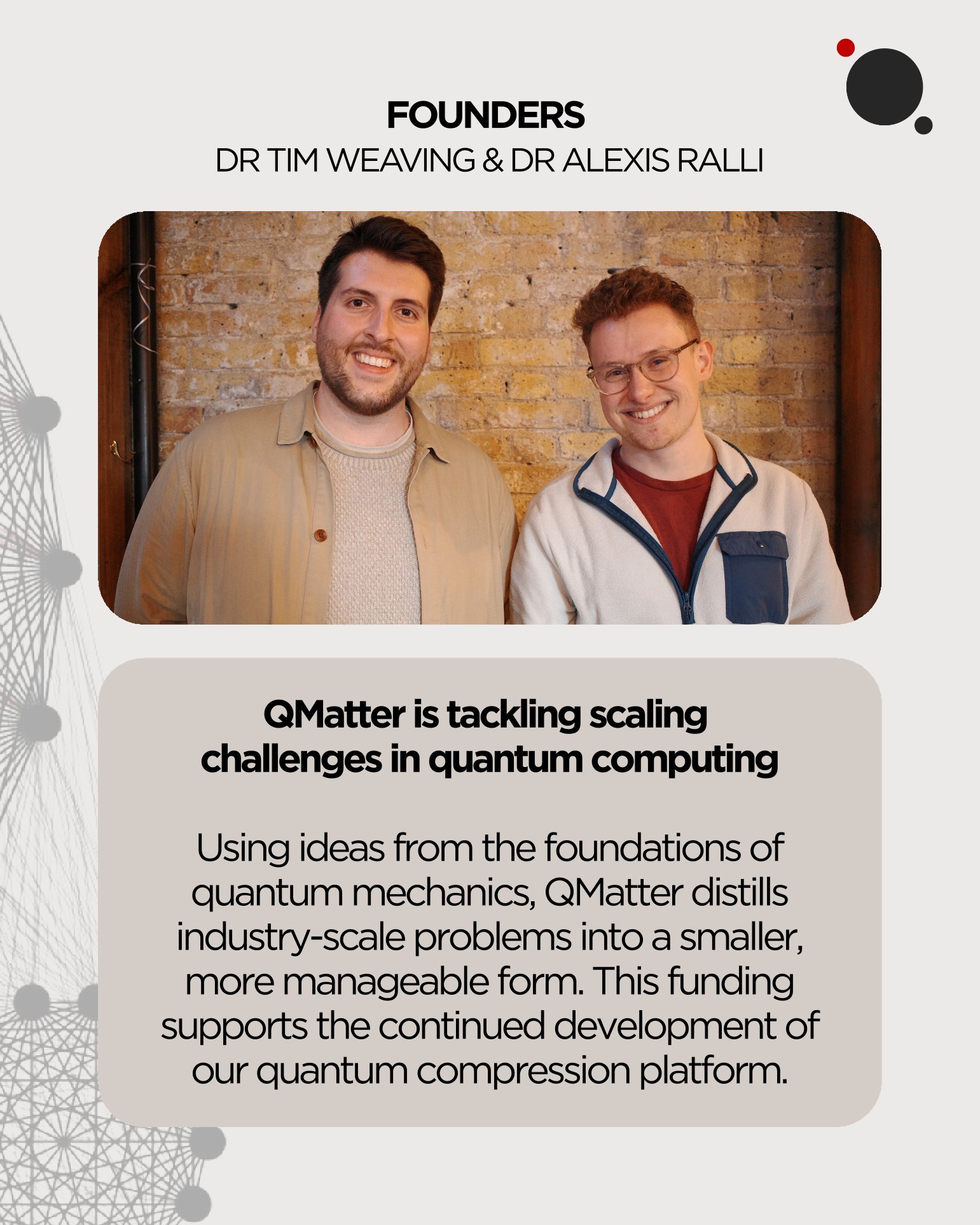 QMatter is building quantum compression software that shrinks industrial‑scale simulation problems so they run efficiently on today’s classical and near‑term quantum hardware. By extracting only the essential quantum features, their platform unlocks more accurate R&D in drug discovery, materials, and physics‑informed AI.
